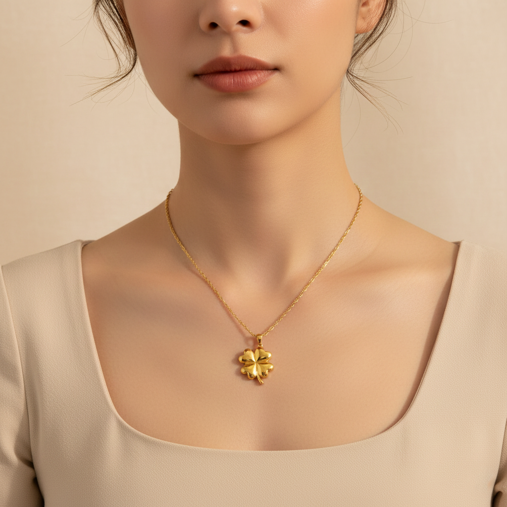 Embrace good fortune with the Clover necklace. This charming piece showcases a beautifully polished four-leaf clover pendant suspended from a delicate chain. A timeless symbol of luck and happiness, the Clover necklace is perfect for adding a touch of enchantment and positivity to your daily style. Wear your luck close to your heart.